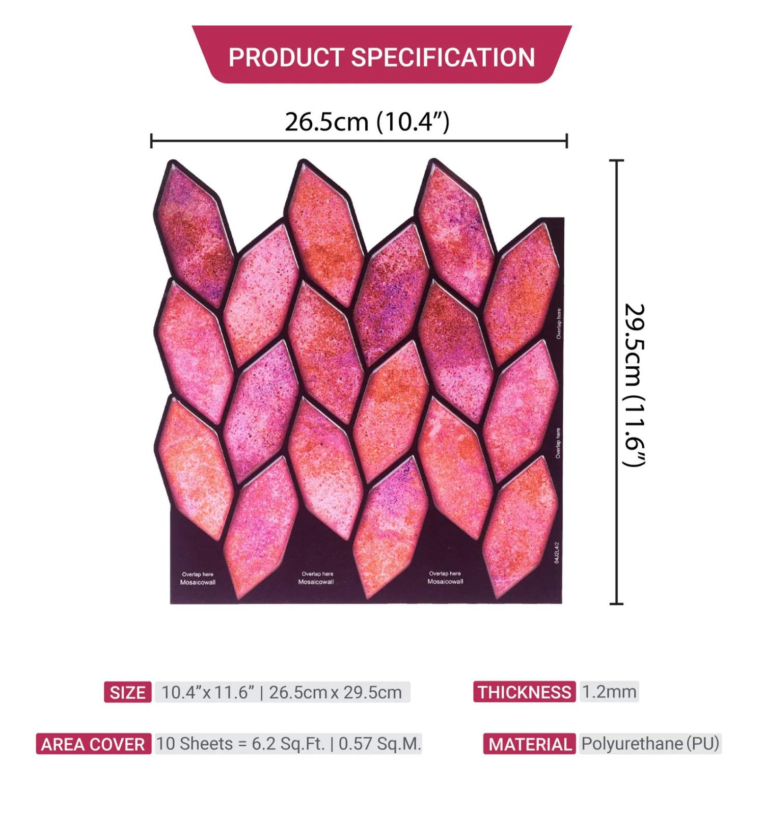 Area Cover: 0.7 sq.ft./tile