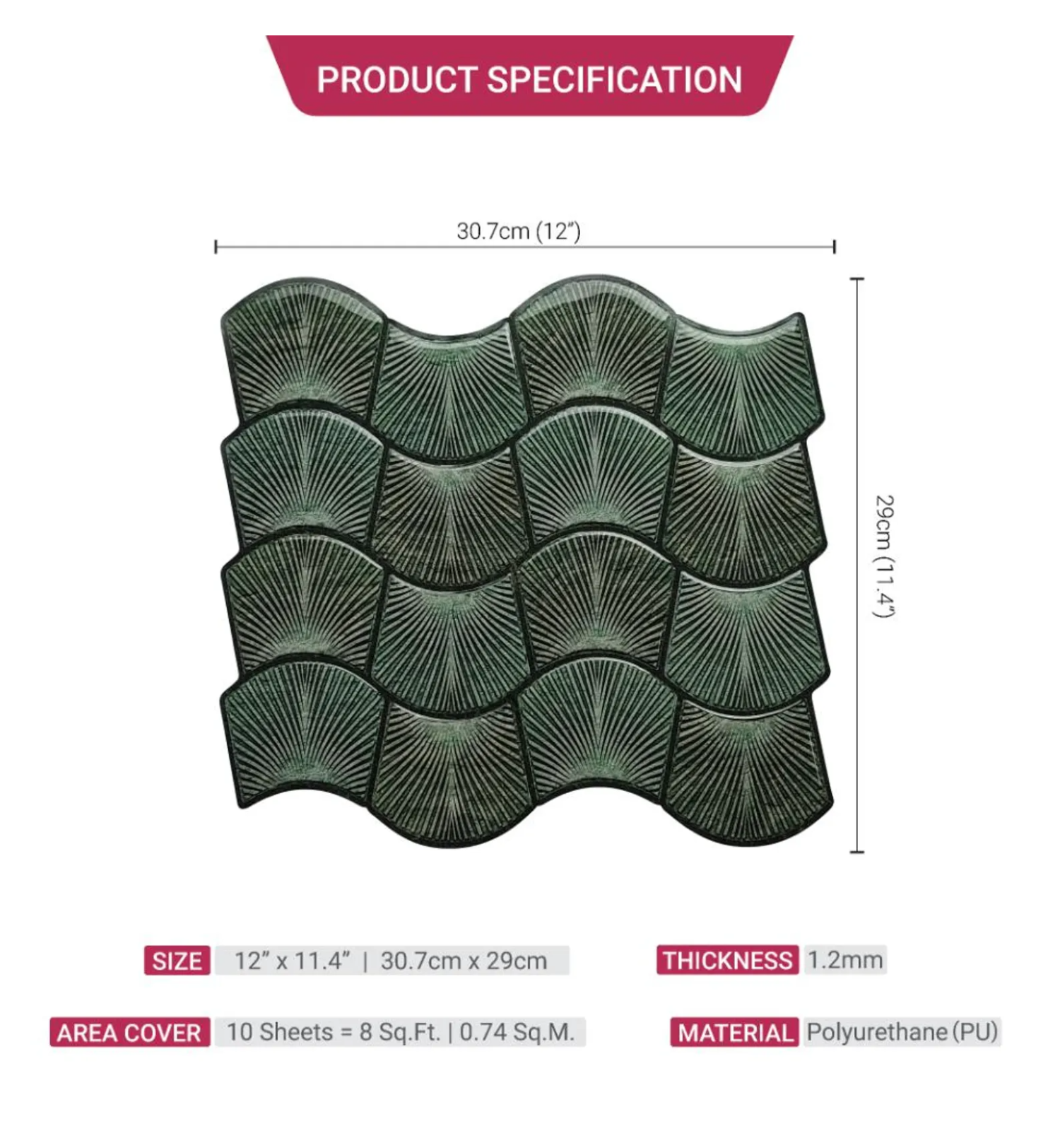 Area Cover: 0.8 sq.ft./tile
