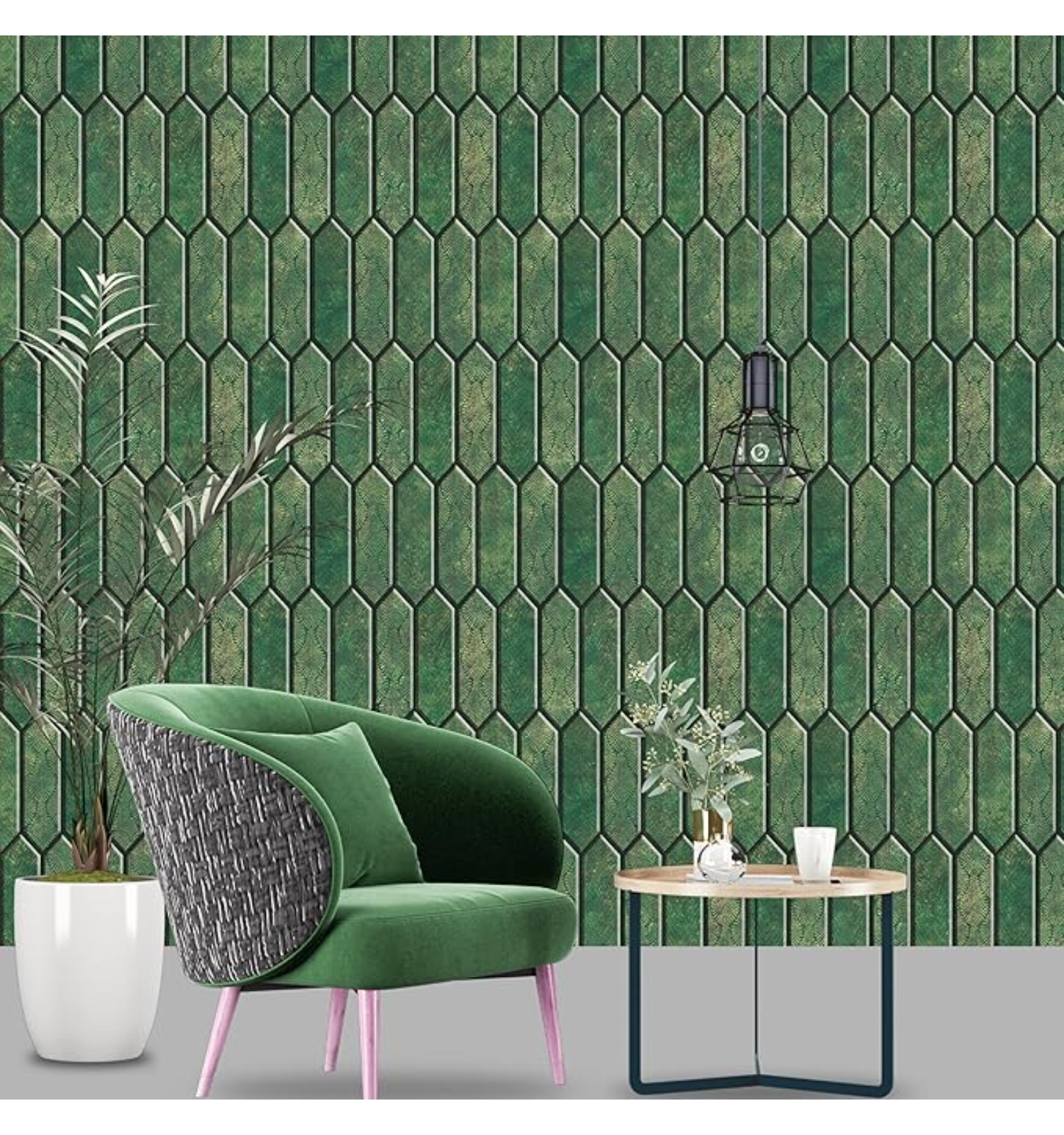 Radiant Green Long Hexagon Peel and Stick Wall Tile | Kitchen Backsplash Tiles | Self Adhesive Tiles (Copy)