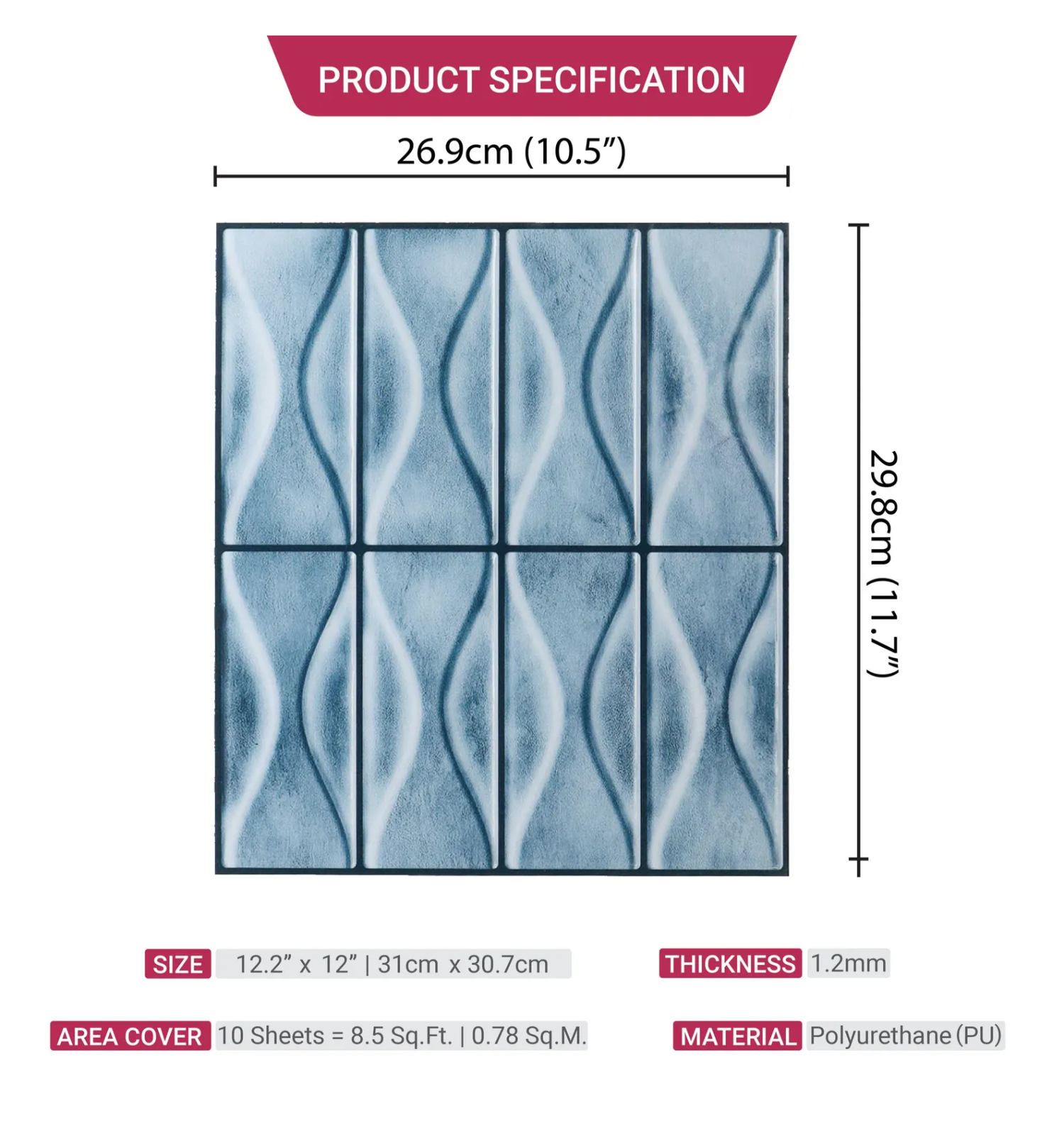 Blue 5 Sheets 3D Peel and Stick Kitchen Backsplash Tile