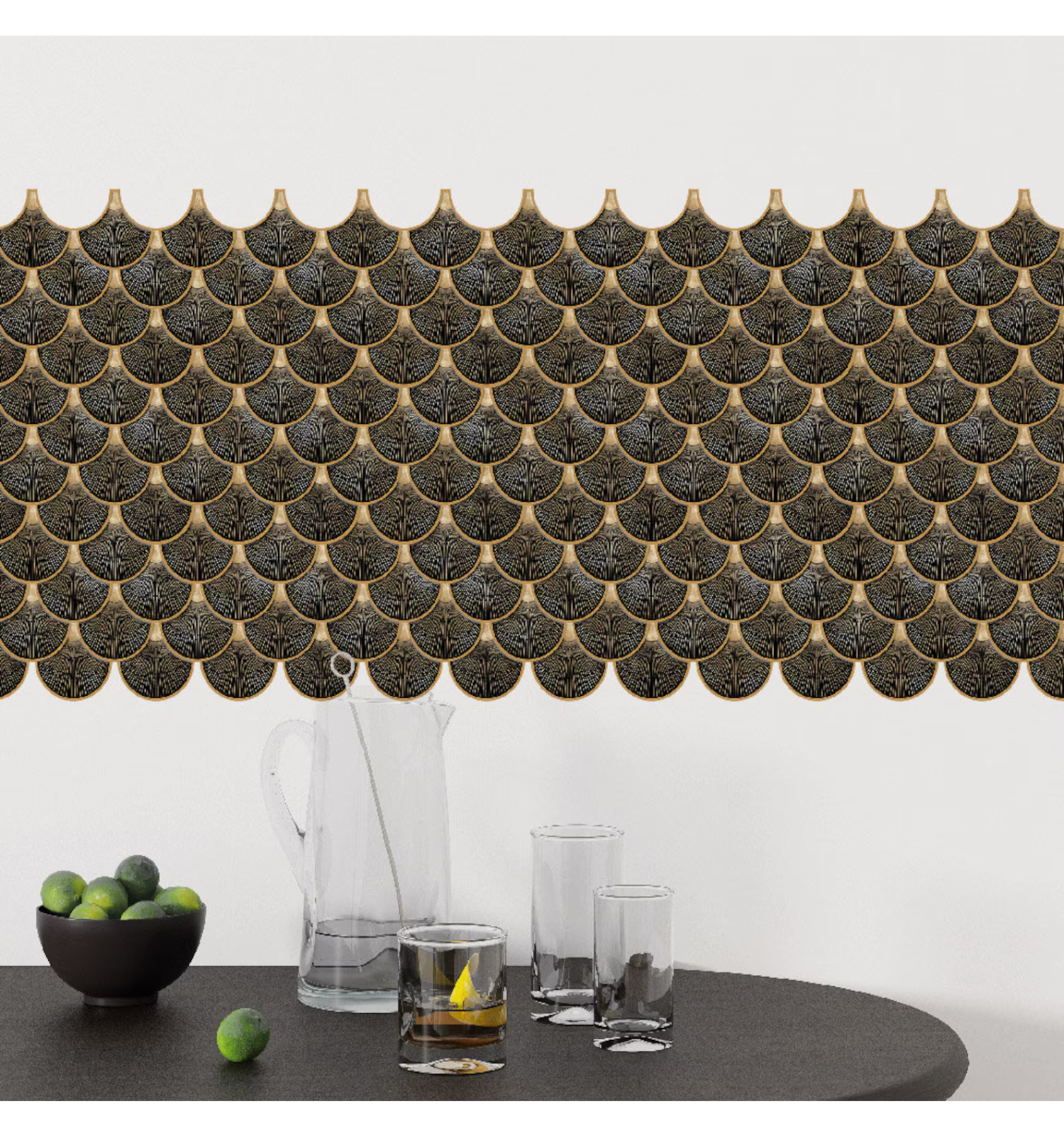Black Fishscale Peel and Stick Wall Tile | Kitchen Backsplash Tiles | Self Adhesive Tiles