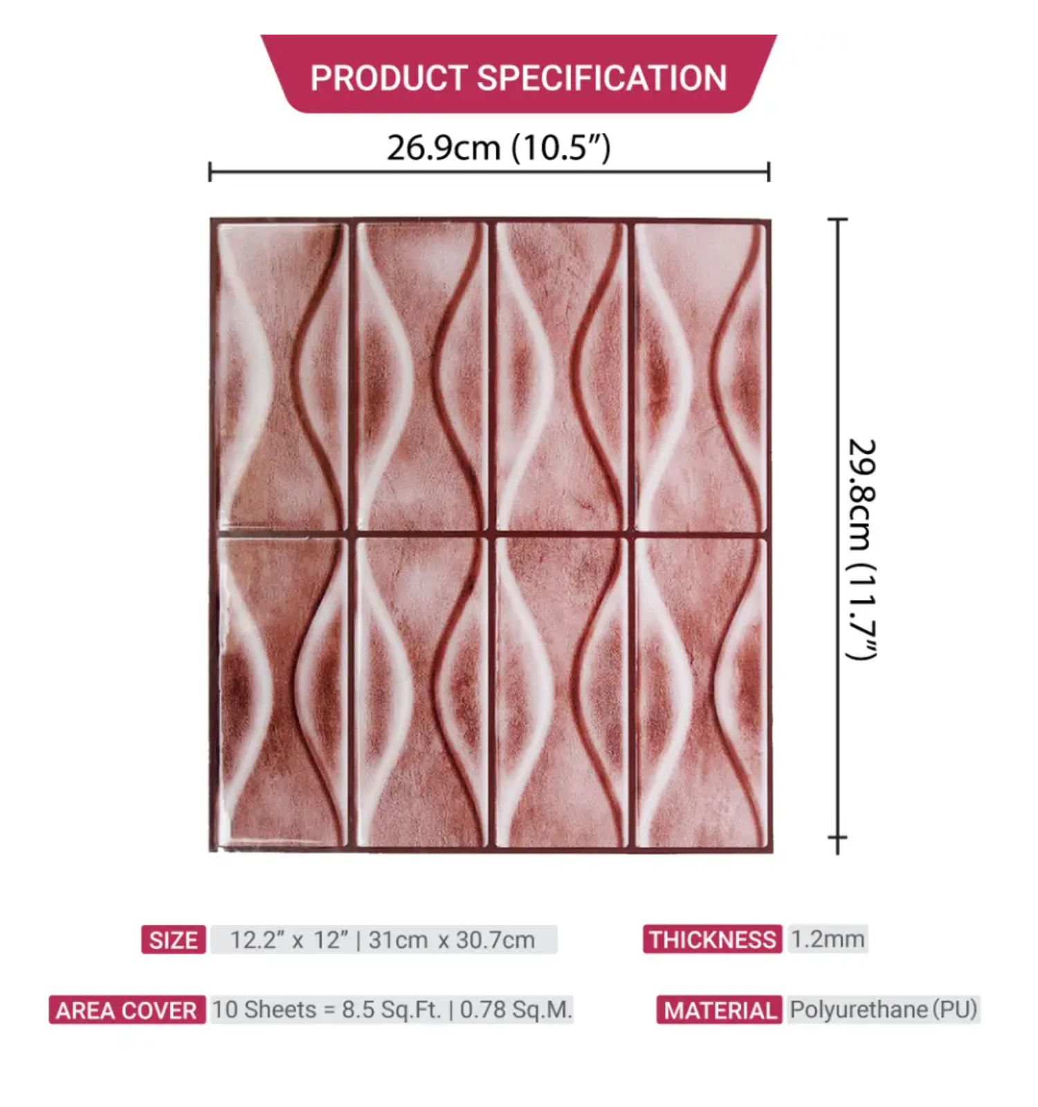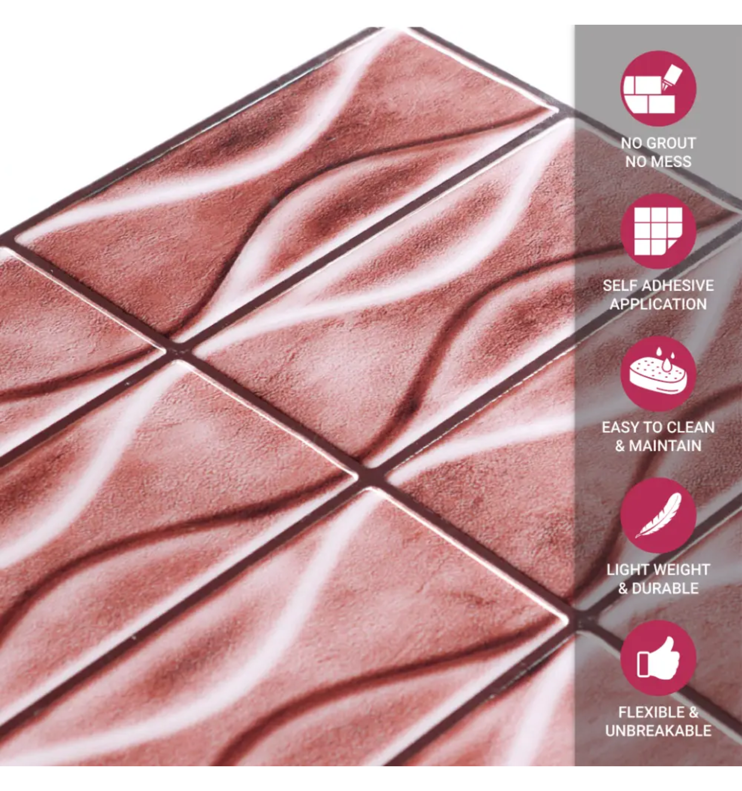 Dusty Rose 5 Piece Peel and Stick Kitchen Backsplash Tile
